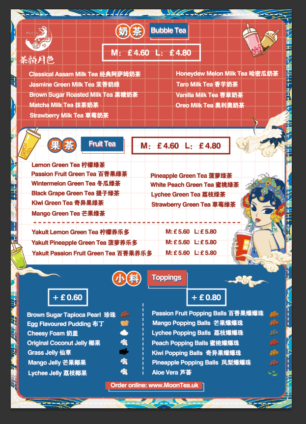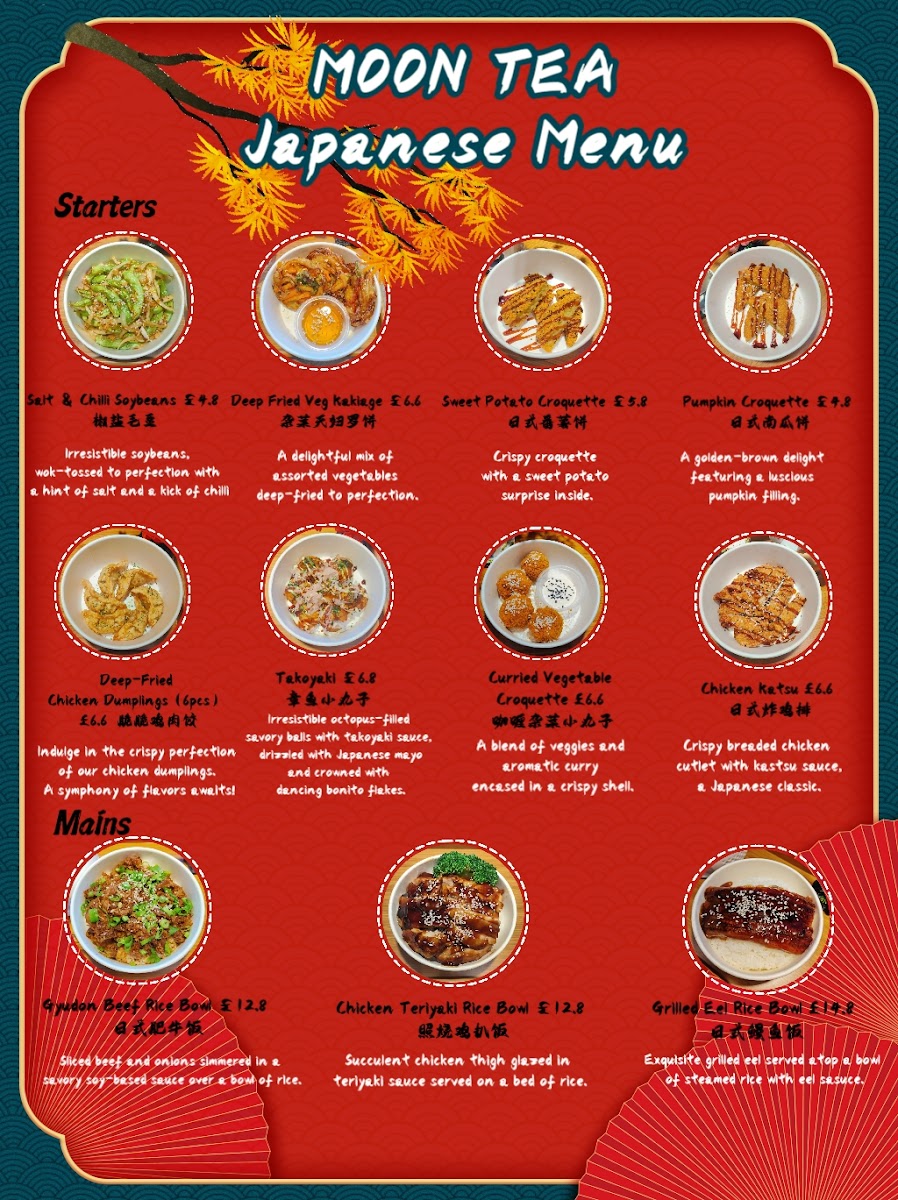 Introducing the menu at Moon Tea Chinese Cafe, a hidden gem nestled in Apperley Bridge, Bradford. This cafe expertly marries traditional Chinese culinary art with a cozy, authentic atmosphere.